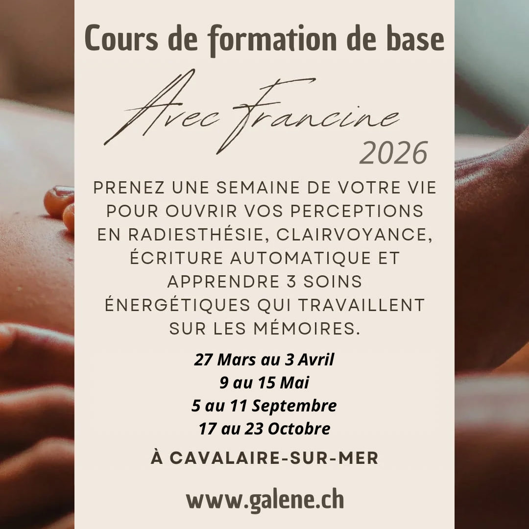 Prenez une semaine de votre vie pour ouvrir vos perceptions en radiesthésie, clairvoyance, écriture automatique et soins énergétiques qui travaillent sur les memoires.